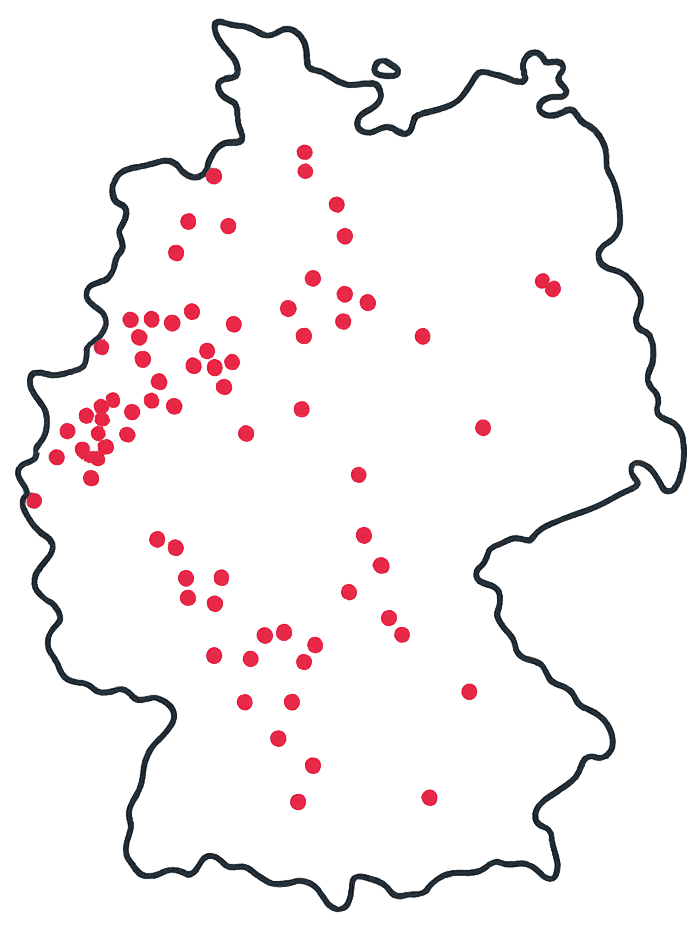 weit über 100 Standorten und mehr als 50 selbstständigen Gesellschaften sind wir deutschlandweit präsent und zugleich tief in den jeweiligen Regionen verankert.